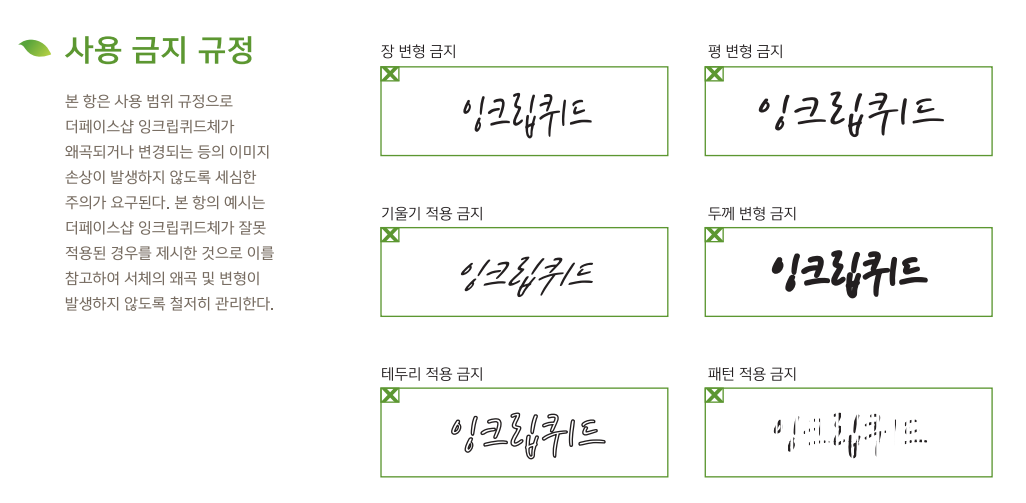 상업용 무료폰트 / 기업배포 무료서체 / 잉크립퀴드_(주)더페이스샵 서체