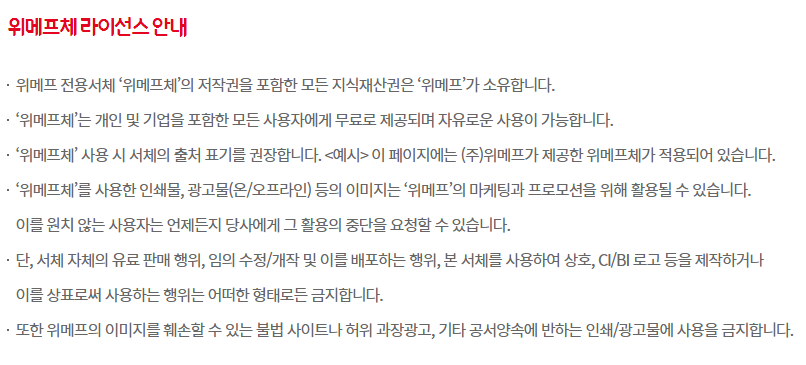 상업용 무료폰트 / 기업배포 무료서체 / 위메프체_위메프 서체
